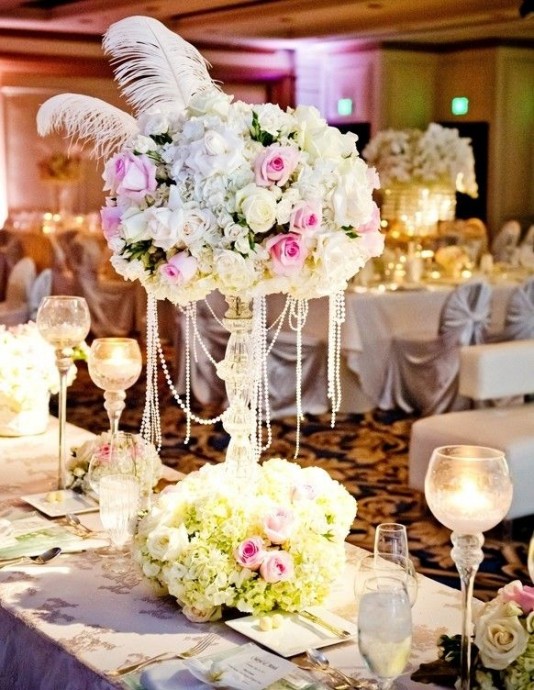 Классику никто не отменял. Украсить свадебный стол можно классически и придать изюминку. Например серебро с белым - станет прекрасной альтернативой. И классически и с изюминкой.